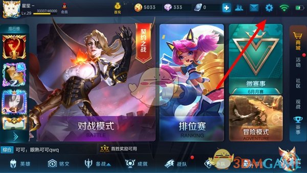 1、玩家可以在王者榮耀的大廳的右上角的設置中的基本設置。