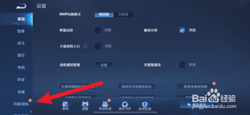 2、其次,瀏覽并進(jìn)入“功能設(shè)置”或“隱私設(shè)置”欄目。