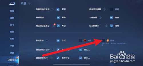 在功能/隱私界面, 將在線狀態(tài)這一欄,選擇隱身即可。
