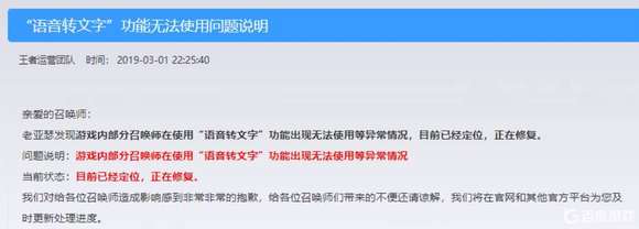 2、前往官網查詢官方是否發布過語音轉文字的bug修復公告,如果有,等待修復完成即可。