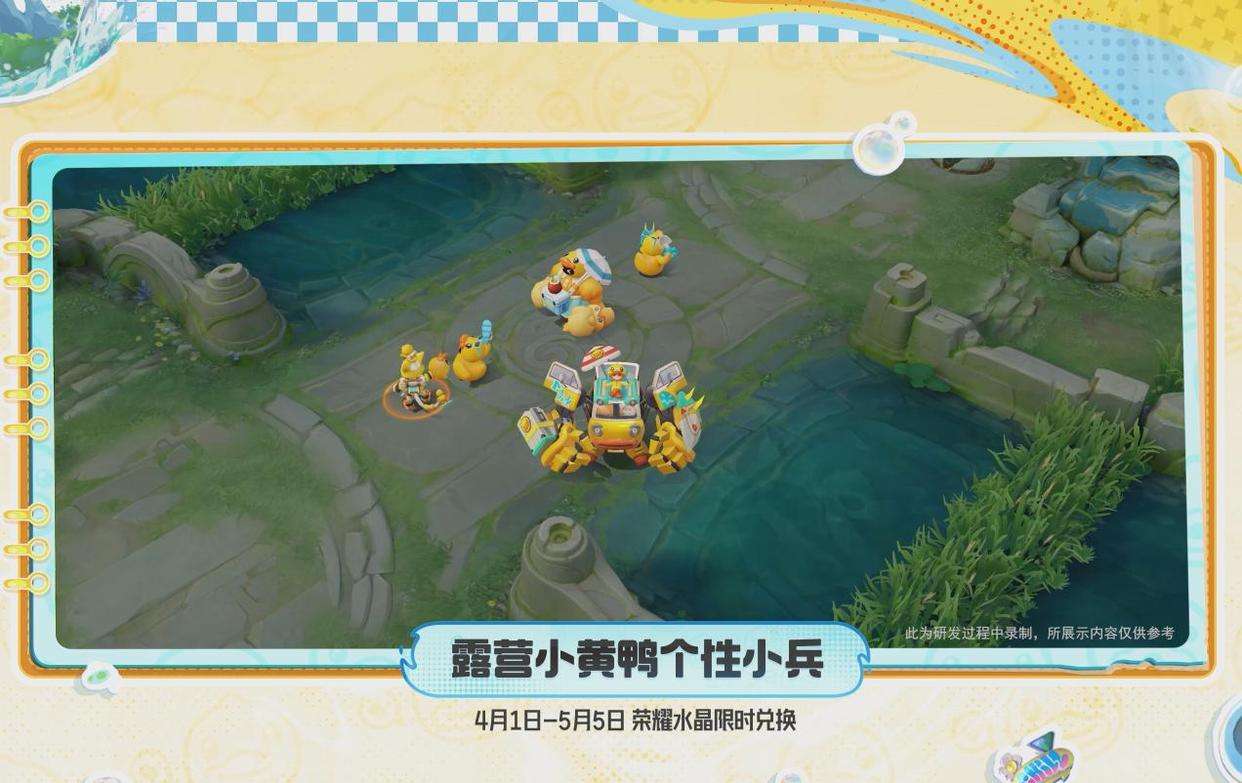 小兵的小黃鴨聯動皮膚將在4月1日上架,需要一顆榮耀水晶兌換。