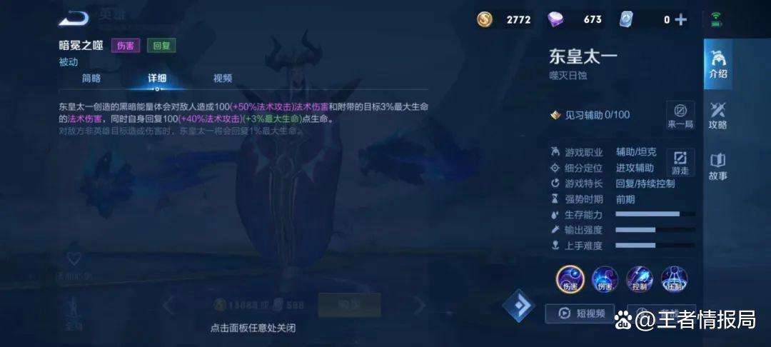 與前面這幾位英雄不同的是,最大生命值的增加不會直接提升東皇太一的輸出能力,而是作用在東皇太一的被動技能:東皇太一的暗黑能量體在對敵方造成傷害的同時,也會為東皇太一回復生命值,而生命值的回復量直接與東皇太一的最大生命值掛鉤。