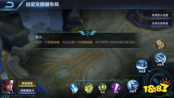 進(jìn)入“自定義面板”后,把一二技能的按鍵互換。