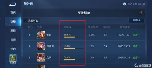 查看英雄勝率排行榜:1. 進入游戲:首先,玩家需要打開王者榮耀游戲,并進入游戲主界面。2. 進入社區:在游戲主界面上,找到并點擊【社區】選項,進入微社區界面。3. 查看英雄榜單:在微社區界面,點擊左側的【攻略】一欄,然后在右側界面找到并點擊【英雄榜單】選項。4. 查看勝率排名:在打開的界面上,玩家就可以看到各個英雄的勝率排名了。