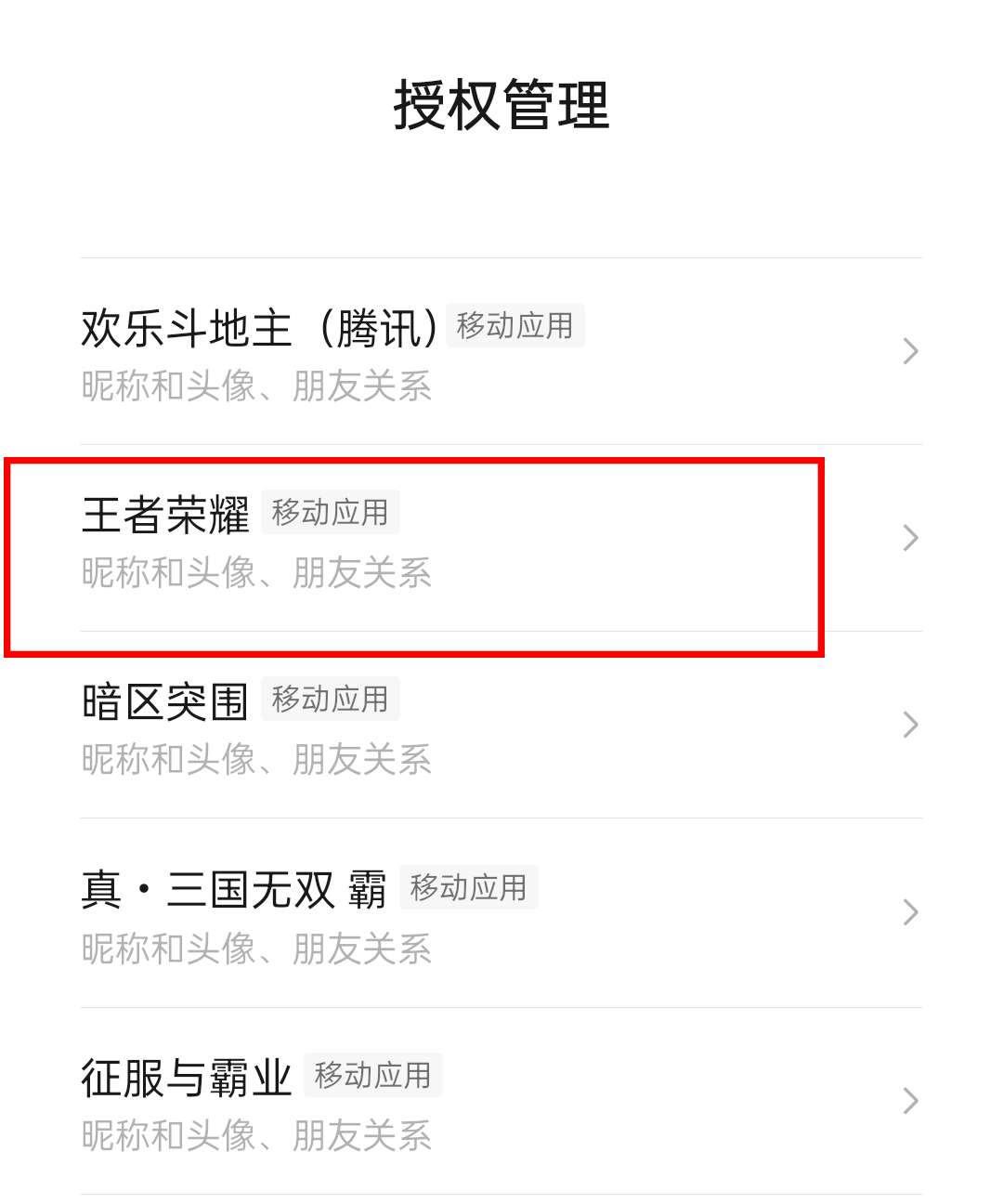 4.找到“王者榮耀”,打開后選擇“解除授權”。微信的操作就完成了。