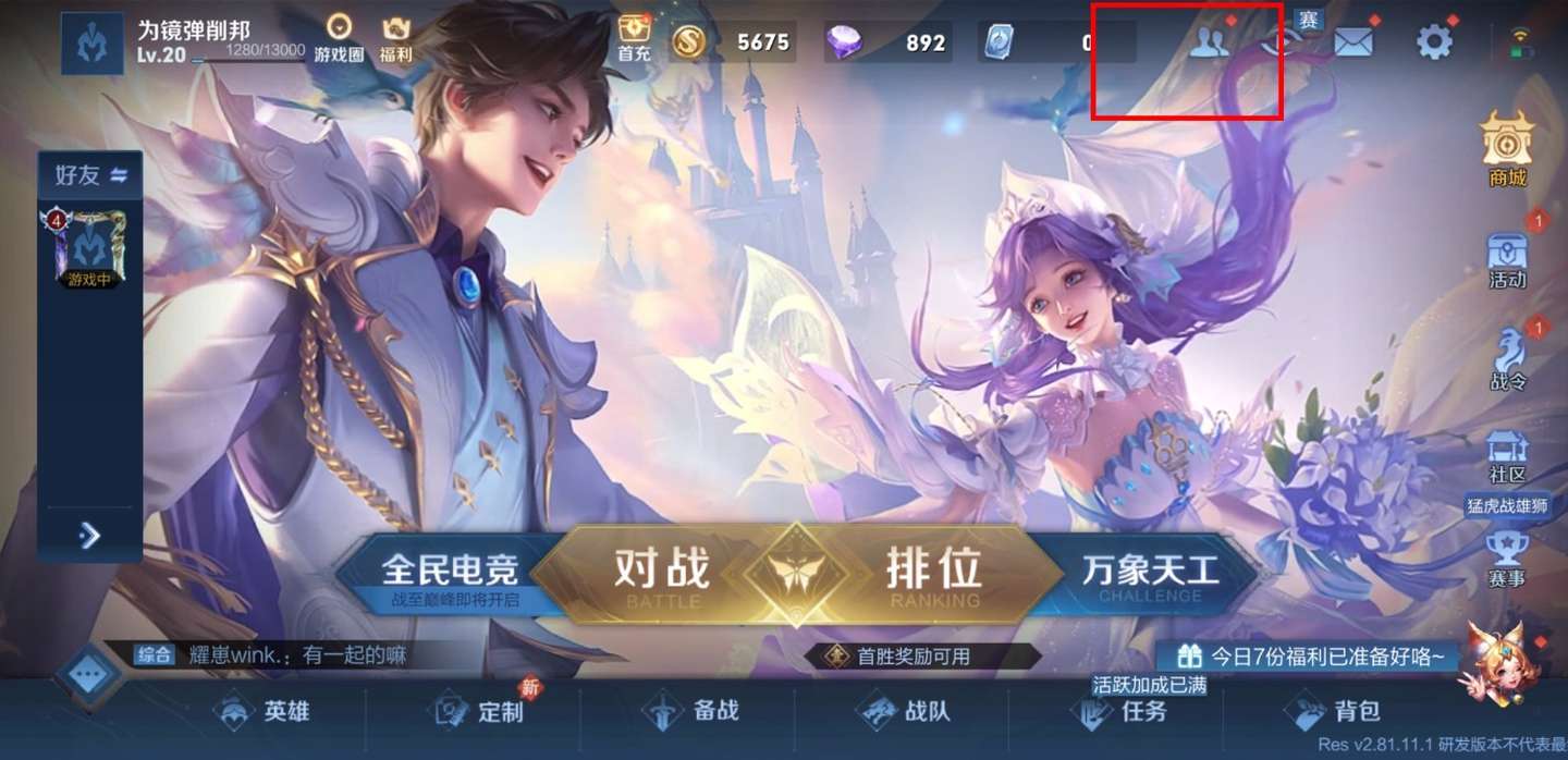 1)點開王者榮耀的游戲關系,右上角的雙人圖標