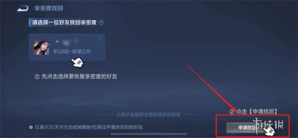 4、選擇一位好友找回親密度,點擊右下角的申請找回。