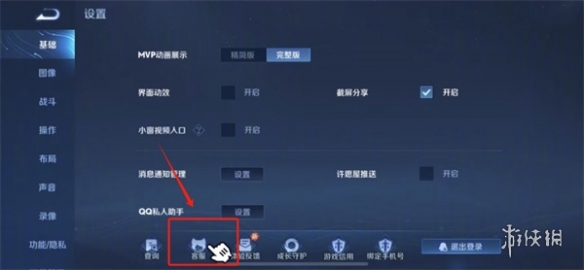 2、在設置界面中點擊左側的基礎,點擊下方的客服。
