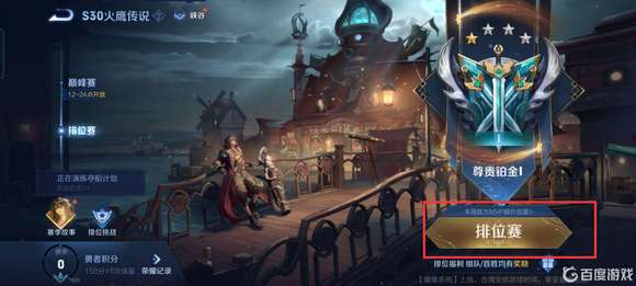 排位賽通過游戲首頁即可參加。具體路徑如下: