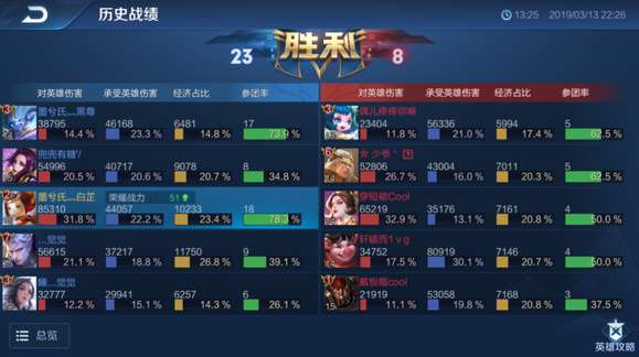 那么在評分中主要看哪幾個方面呢,從對戰資料中,衡量評分的角度分別有五個,輸出、生存、團戰、發育、KDA,這五個方面;以及游戲結束時,輸出占比率、承受傷害占比率、經濟占比、參團率;這五大方面以及四小方面都是評選每場金牌銀牌的標準。