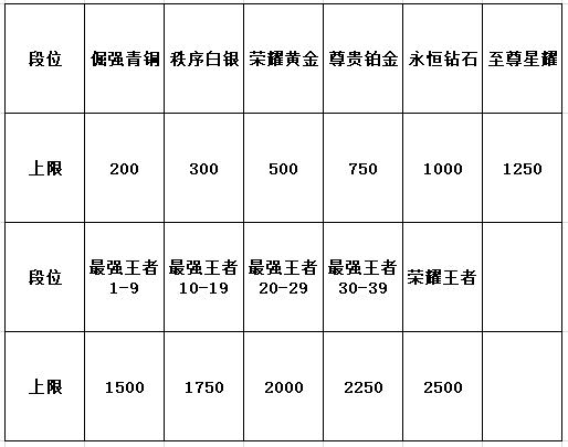 然后是排位表現戰力,這個戰力的上限跟你的段位有關,提升方式便是排位賽使用你的英雄獲勝,上限數值具體見下表: