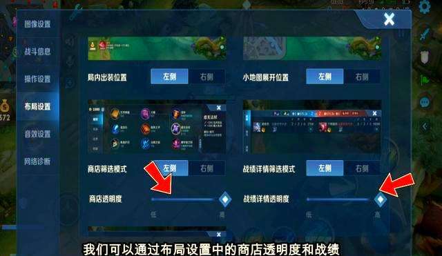 再來看布局設(shè)置中的其他選項。在日常游戲中,調(diào)整商店透明度和戰(zhàn)績詳情透明度,能夠有效防止裝備或戰(zhàn)績界面遮擋視線。尤其是在選擇裝備時,稍有不慎就可能面臨危險。然而,這個問題有一個簡單的解決方法——調(diào)整布局設(shè)置中的商店透明度和戰(zhàn)績詳情透明度。只需將透明度滑塊拉到最低,你便能更清晰地觀察英雄狀態(tài),同時也不會被裝備或戰(zhàn)績界面干擾視線。