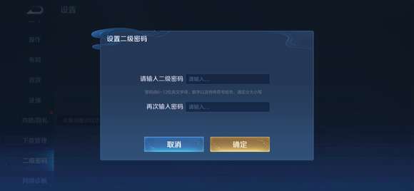 進入游戲大廳:打開王者榮耀手游,進入游戲大廳界面。找到設置選項:在游戲大廳的右上角,點擊“設置”圖標。進入二級密碼設置:在設置界面中,下滑找到“二級密碼”選項,并點擊進入。開啟二級密碼:在二級密碼設置界面,勾選“二級密碼設置”右側的復選框,以開啟二級密碼功能。設置密碼:進入設置二級密碼界面,按照提示輸入二級密碼,并再次輸入密碼進行確認。最后,點擊“確定”按鈕完成設置。