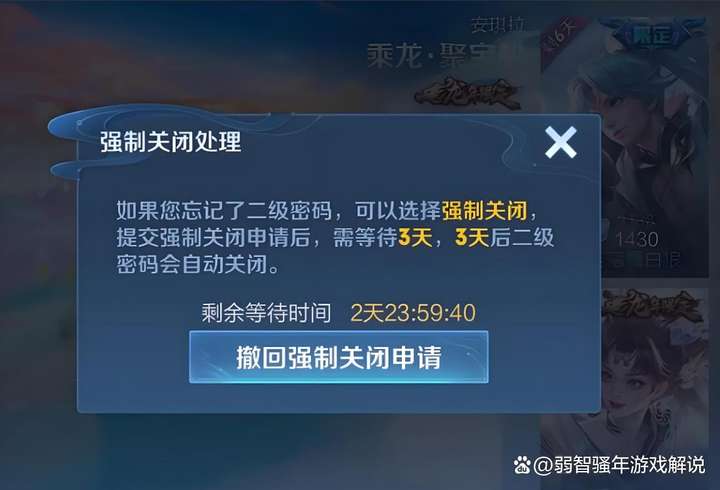 進(jìn)入設(shè)置 → 二級密碼 → 選擇「修改」→ 點擊「忘記密碼」→ 提交強制關(guān)閉申請。