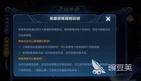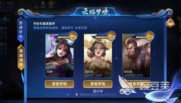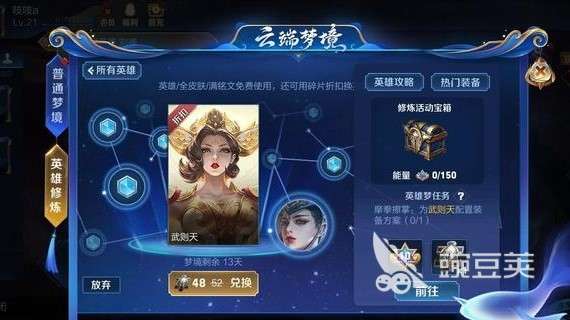 下面就讓小編帶各位熟悉一下活動獎勵吧。選擇相對應的夢境,咱們能夠立刻活動該英雄的折扣兌換特權,能夠花更少的英雄碎片換英雄,活動時間內能夠免費在所有模式中使用該英雄,體驗該英雄的所有皮膚(非直銷皮膚和傳說皮膚沒法體驗),完成相對應任務之后獲取終極大獎。