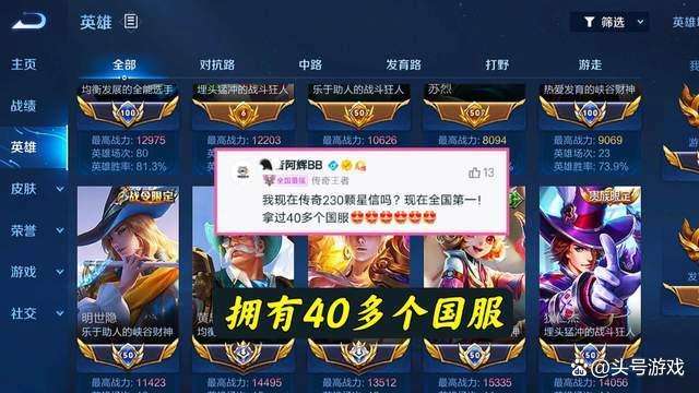 其實對于這位玩家而言,擁有148顆星也并不是最讓他炫耀的事情,這位玩家還說,自己擁有40多個國服稱號,也就是說,在王者榮耀中,有快一半的英雄都已經被他打到了國服,不得不說,這么強的玩家還是非常少見,畢竟一般這種情況只有一些職業選手或者是技術主播才擁有這樣的實力,就是這玩家的游走段位也是非常的高,可以看出,玩家的綜合實力是比較強的,因為除了一些輔助英雄,就連一些射手英雄,甚至法師英雄都擁有過國服稱號。