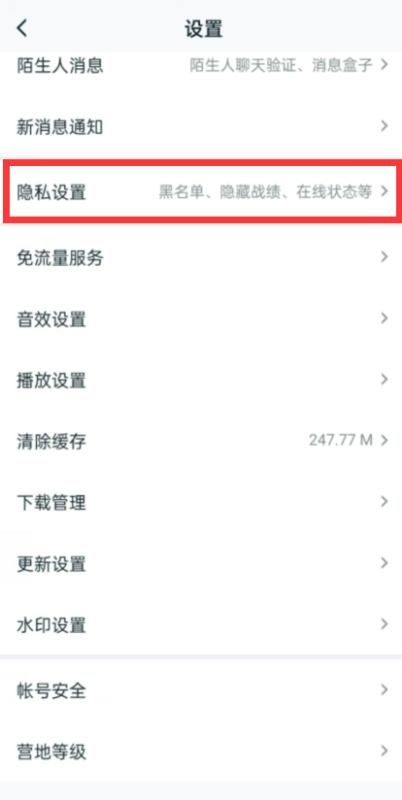 然后,在隱私設置頁面中找到在線狀態選項并點擊進入。