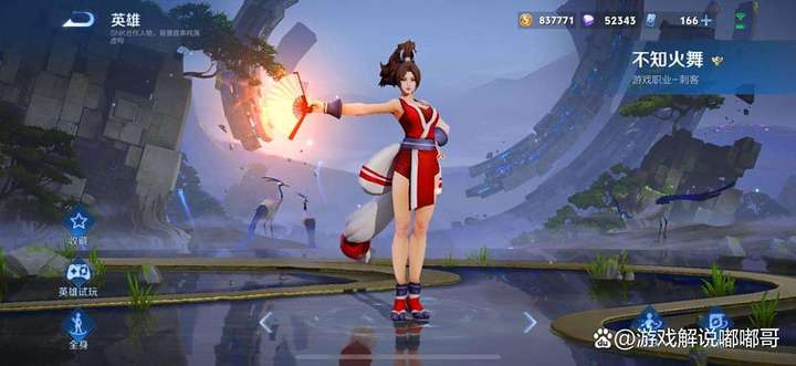 不知火舞,這是一位法刺型英雄,火舞的機動性非常高,而且可以說沒有弱勢期,因為火舞的被動和技能都可以對敵人造成控制,而且可以是多個目標,同時二技能還可以降低敵人的法抗和移速,兩件裝備的火舞就可以打出一套技能瞬秒脆皮的傷害,因為技能都可以配合閃現使用,使得火舞不僅可以蹲草陰人,甚至還可以作為團戰的“發動機”,因為火舞的技能配合閃現可以卡視野打敵人一個出其不意,后期只要是被火舞控到,脆皮基本上沒有生還的空間。